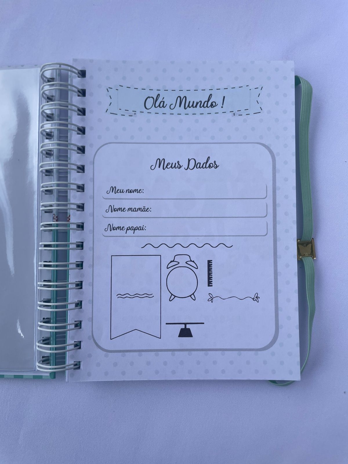 – Página inicial personalizada com os dados do bebê, combinando com o tema da capa;