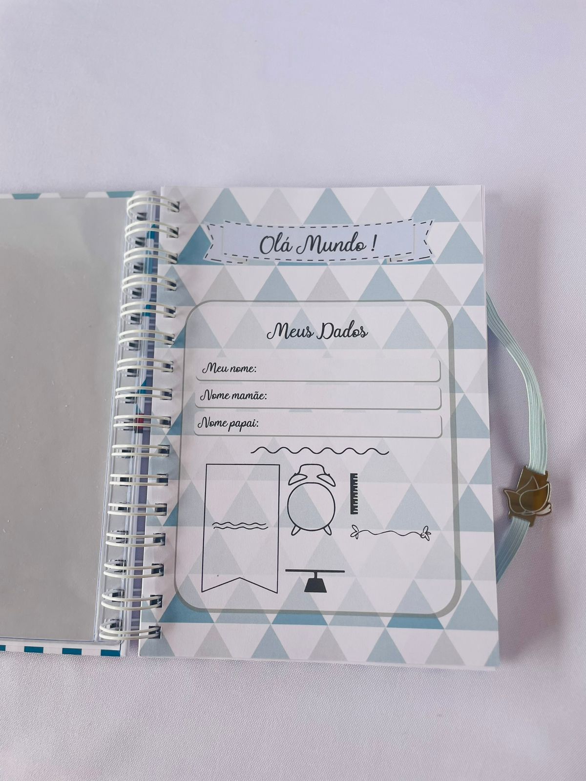 Design clássico e elegante. O tema Xadrez Azul traz sofisticação e aconchego para guardar as memórias da saúde do seu bebê.